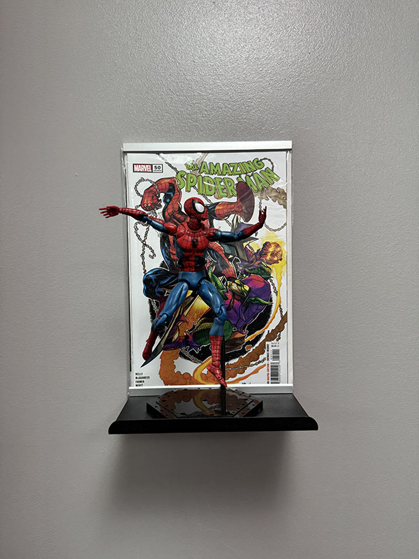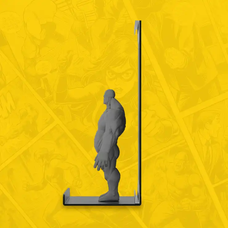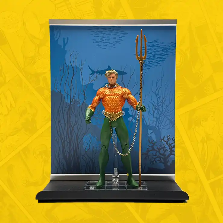 Show off you favorite hero or collectible in a new way with your favorite background. Made of heavy-duty .063 powder-coated aluminum and tracked for an 8 x 10 print, photo, drawn, or painted design.  Anything you can imagine. The display can hang on the wall or sit on a flat surface and is designed to hold up to 2 pounds. It also has rubber bumpers on the bottom and back to keep your surface safe. Collectibles and backgrounds are not included but are available in our accessory section.